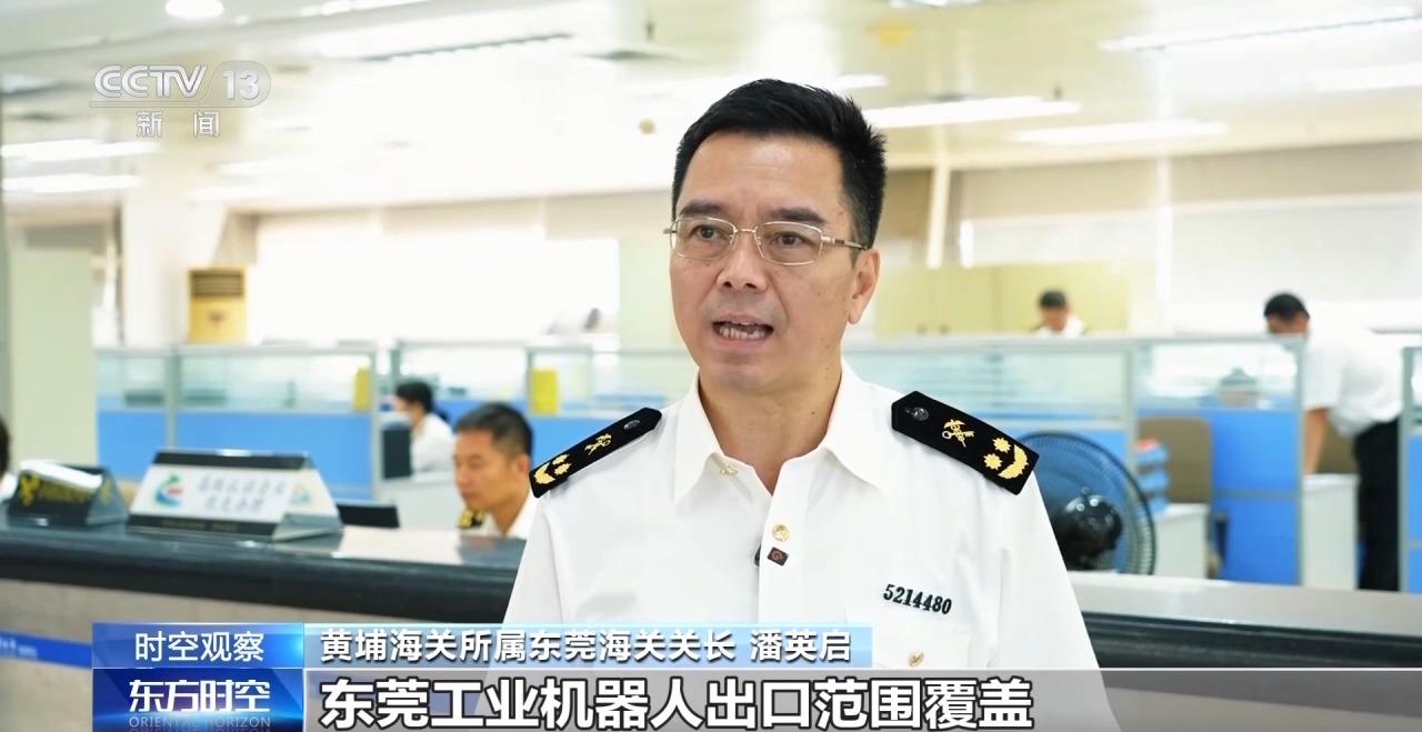 黃埔海關(guān)所屬東莞海關(guān)關(guān)長 潘英啟:東莞工業(yè)機器人出口范圍覆蓋亞洲、歐洲、美洲等多個地區(qū),出口產(chǎn)品類型豐富多樣,涵蓋焊接機器人、搬運機器人、裝配機器人等多種工業(yè)應用場景的機器人。