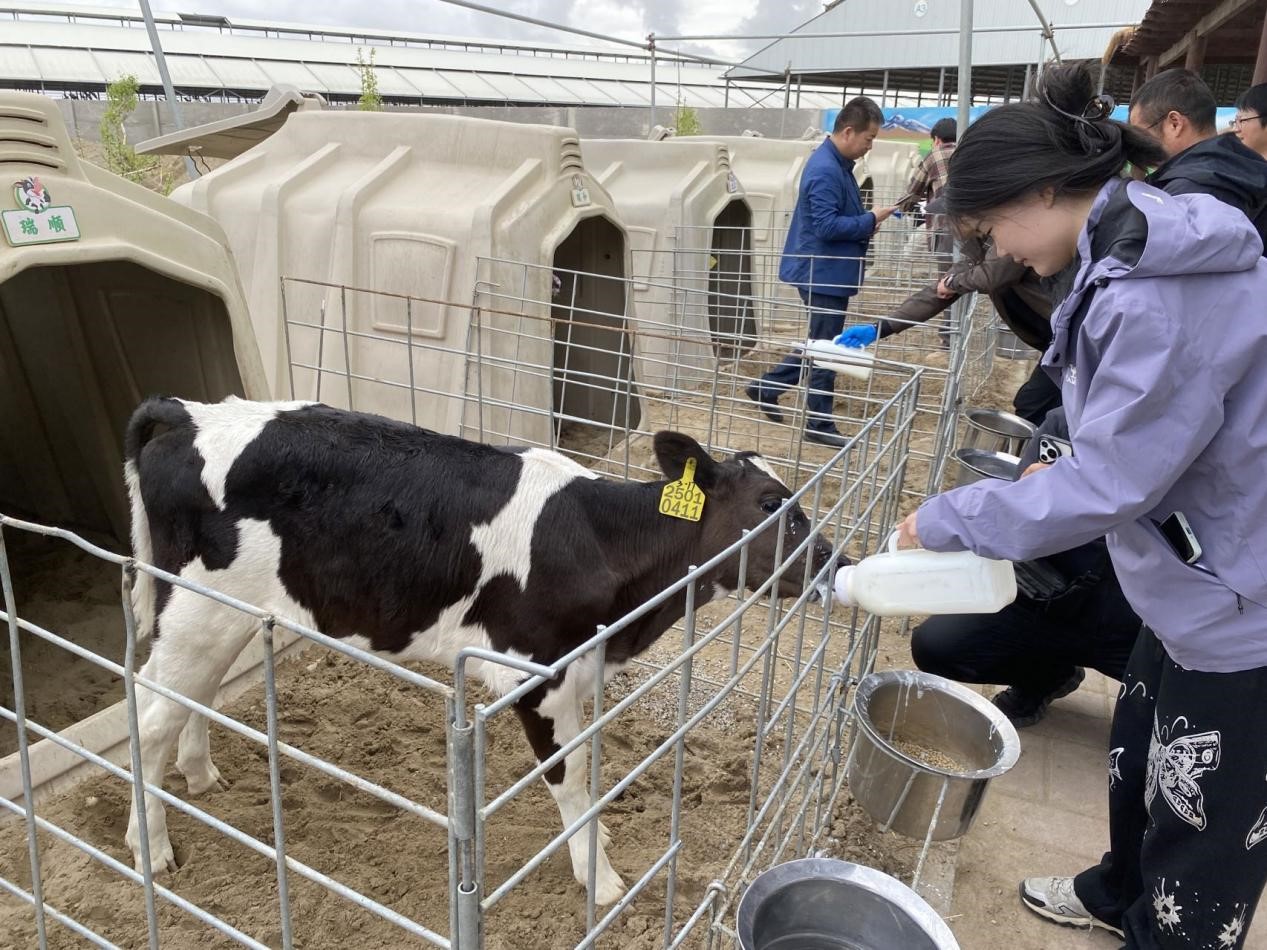 圖為天瑞祥牧場研學(xué)基地,游客在體驗(yàn)給小牛喂奶。冶明偉攝