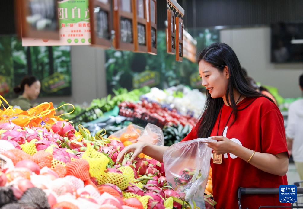 5月10日,消費(fèi)者在山東省濱州市陽(yáng)信縣一家超市選購(gòu)水果。新華社發(fā)(初寶瑞攝)
