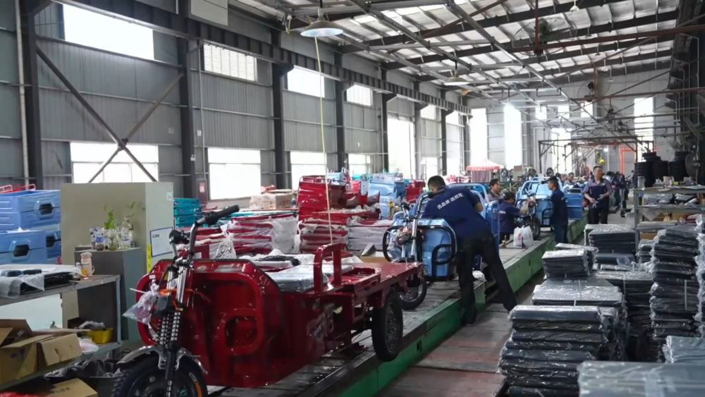 近日,在四川眉山天府新區(qū)雙勝新能源車業(yè)有限責(zé)任公司的生產(chǎn)車間流水線上,工人們正緊鑼密鼓組裝一批即將發(fā)往非洲、東南亞的電動(dòng)三輪車。