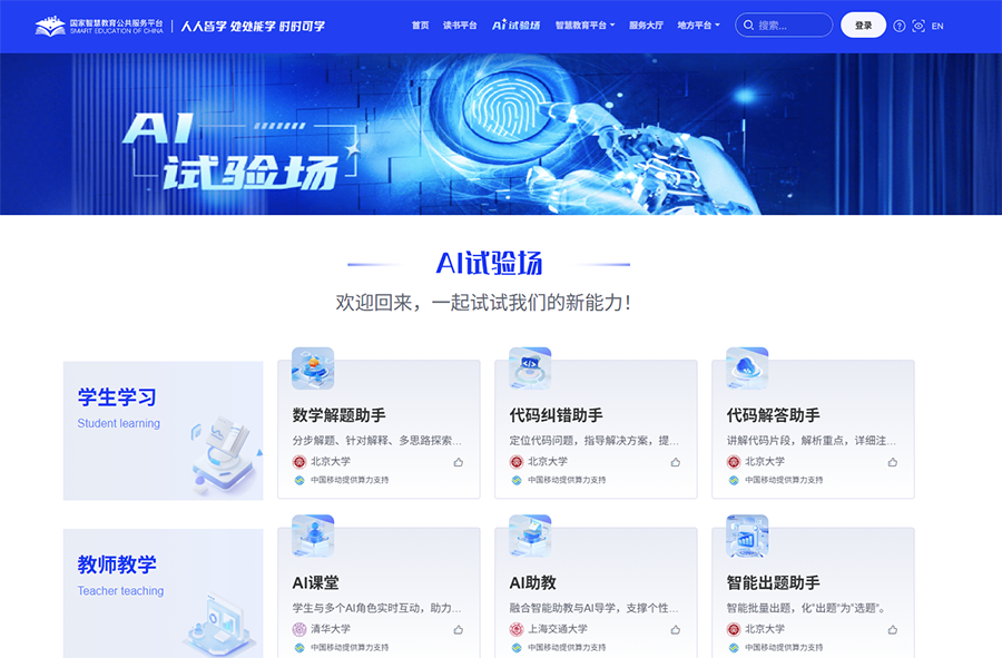 與時俱進(jìn),今年,國家智慧教育公共服務(wù)平臺掌握了“新能力”。人工智能(AI)試驗(yàn)場上,數(shù)字解題助手、代碼糾錯助手、代碼解答助手賦能學(xué)生學(xué)習(xí);AI課堂、AI助教、智能出題助手賦能教師教學(xué);大模型、信息科技平臺賦能科學(xué)研究……