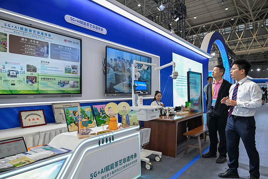 圖為2025世界數(shù)字教育大會教育數(shù)字化成果展展覽現(xiàn)場。