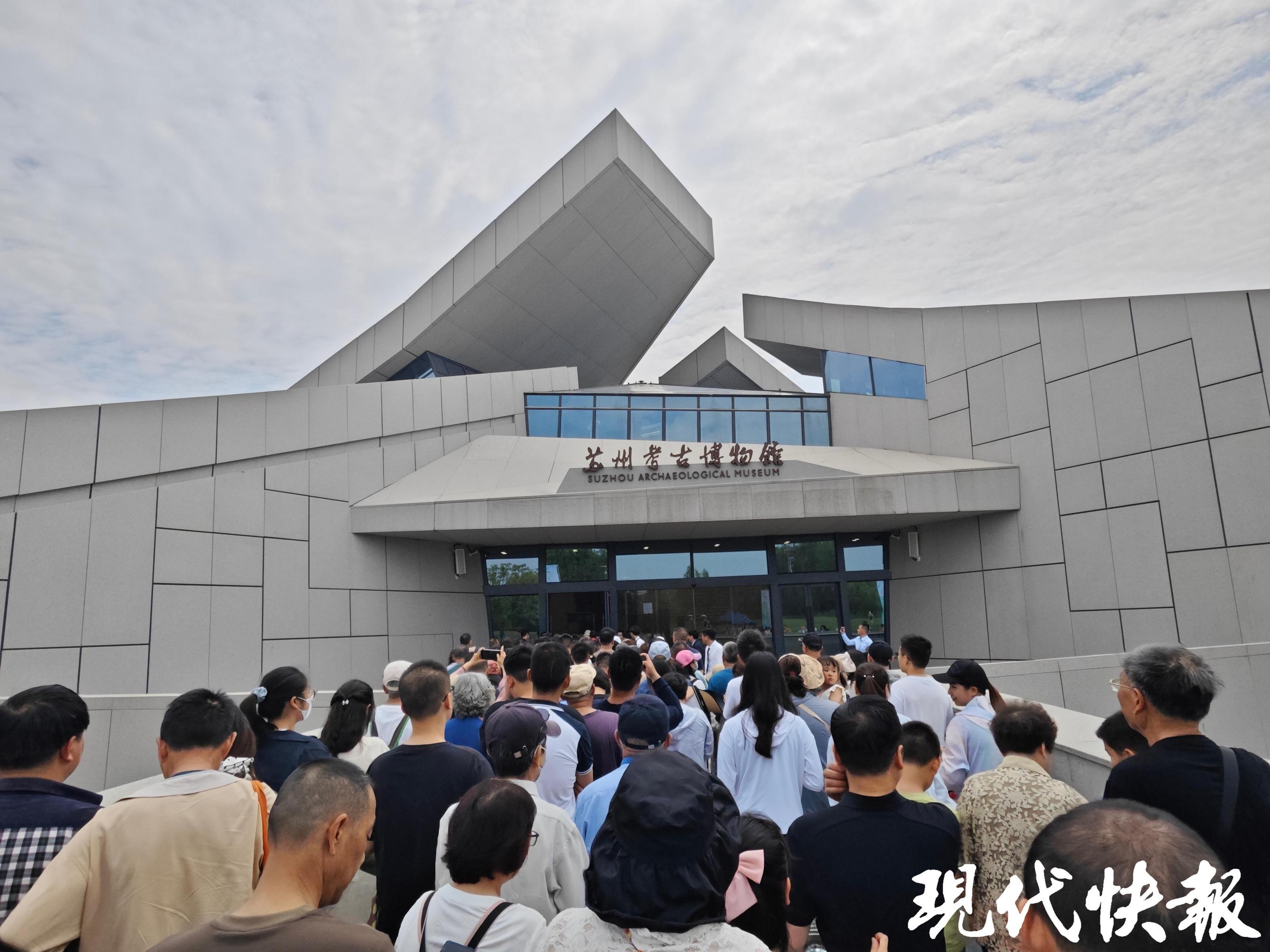 5月17日,江蘇首家考古博物館——蘇州考古博物館正式對公眾開放?!皼]想到一開門就迎來了大客流考驗,一天接待了8000多名觀眾?!碧K州考古博物館館長、蘇州考古所所長程義坦言,沒想到一開館就成了網(wǎng)紅?!疤K州考古博物館和蘇州博物館老館面積差不多大,最大承載量在6000人左右,8000人次屬于超負荷運營?!?/p>