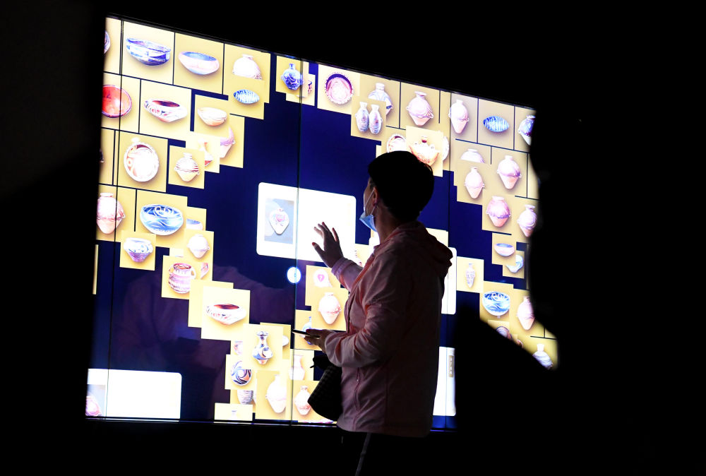 2024年9月24日,參觀者在河南仰韶文化博物館運用多點觸控技術了解文物。新華社記者 郝源 攝