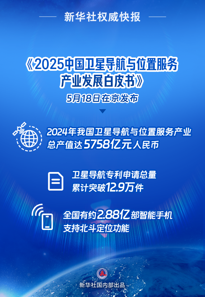 5月18日在京發(fā)布的《2025中國(guó)衛(wèi)星導(dǎo)航與位置服務(wù)產(chǎn)業(yè)發(fā)展白皮書》顯示,2024年我國(guó)衛(wèi)星導(dǎo)航與位置服務(wù)產(chǎn)業(yè)總產(chǎn)值達(dá)5758億元人民幣,同比增長(zhǎng)7.39%;衛(wèi)星導(dǎo)航專利申請(qǐng)總量累計(jì)突破12.9萬件,繼續(xù)保持全球領(lǐng)先……