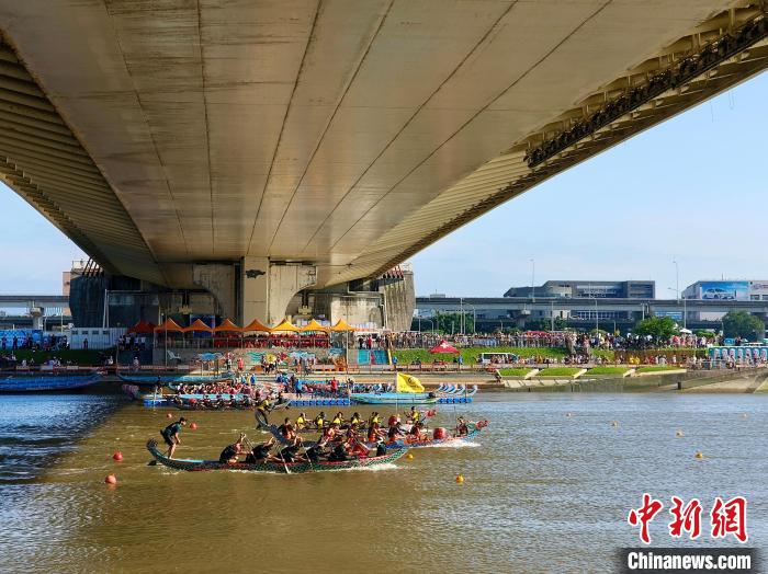 5月30日,臺灣迎來端午節(jié)連假,全臺多地舉行龍舟比賽等活動。圖為臺北大佳河濱公園,2025臺北國際龍舟錦標(biāo)賽首日比賽正在進(jìn)行。中新社記者 張曉曦 攝