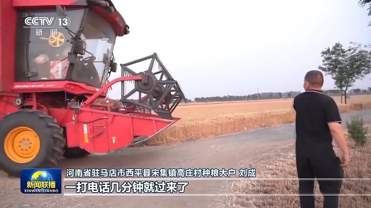 河南省駐馬店市西平縣宋集鎮(zhèn)高莊村種糧大戶 劉成:自己種了有100多畝地,以前叫收割機(jī)都不方便,現(xiàn)在有“農(nóng)機(jī)云”,叫車很方便,哪里車近就叫哪個(gè)車,一打電話幾分鐘就過(guò)來(lái)了。