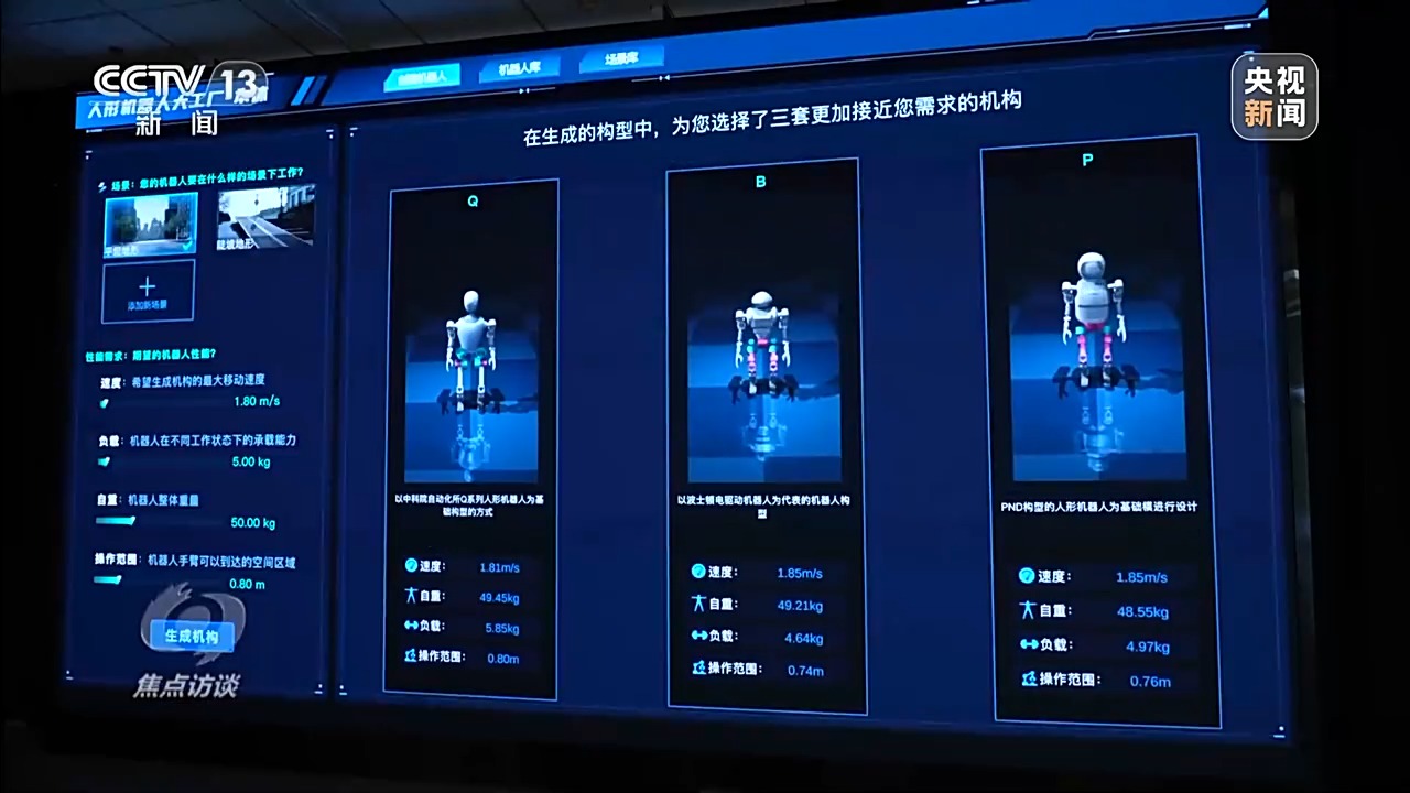 從類腦智能基礎(chǔ)研究原始創(chuàng)新出發(fā),喬紅團(tuán)隊還打造了一個人形機(jī)器人共性技術(shù)大平臺,這就是“通用人形機(jī)器人大工廠”。在這個虛擬仿真大工廠,可以快速設(shè)計構(gòu)建人形機(jī)器人的硬件和軟件系統(tǒng)。
