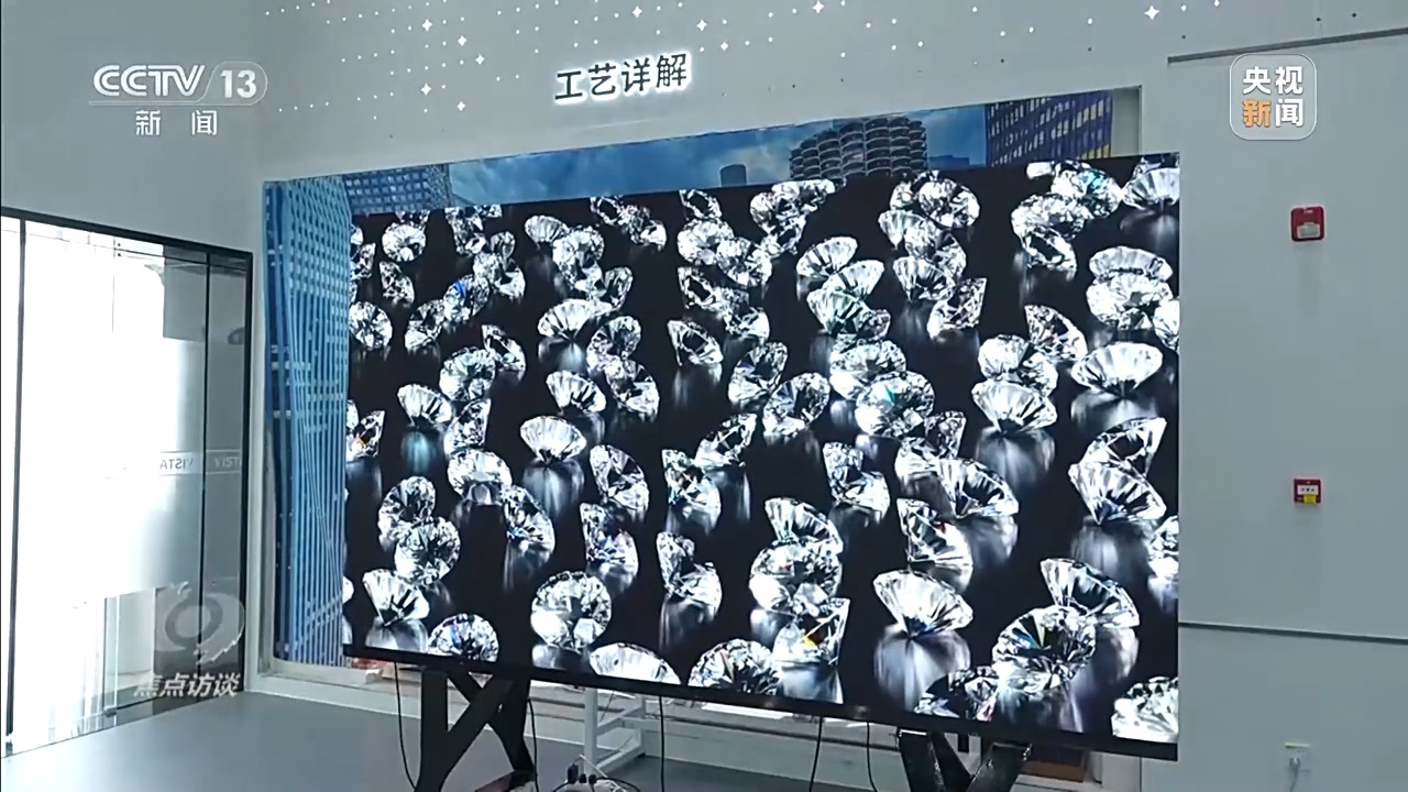 維信諾Micro-LED技術(shù)負(fù)責(zé)人、成都辰顯光電有限公司總經(jīng)理 黃秀頎:這款產(chǎn)品歷經(jīng)了8年的研發(fā)時間,到現(xiàn)在推出全球最新的135英寸TFT基Micro-LED(顯示屏)。它的特點(diǎn),亮度非常高,而且色彩非常細(xì)膩,還原度很高。但是這塊屏是拼接出來的,上面總共有2400萬顆LED發(fā)光點(diǎn),大的135英寸里面有200片屏,每個屏還要把它組裝成箱體,這里有25個箱體。可以根據(jù)客戶的需求定制大小,只要把箱體拼上去就可以無限擴(kuò)展,現(xiàn)在拼縫控制的是幾十個微米量級,大概就是頭發(fā)絲直徑的五分之一。
