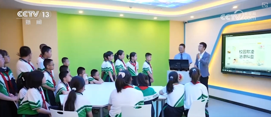 在甘肅通渭,轄區(qū)學(xué)校迎來了檢察官和司法人員送上的《律法護航 青春飛揚》法治課。還有的學(xué)生被邀請到當(dāng)?shù)匚闯赡耆恕耙徽臼健北Wo中心,現(xiàn)場觀看普法視頻,體驗VR、AR、法律知識競答、法治沙龍等活動。