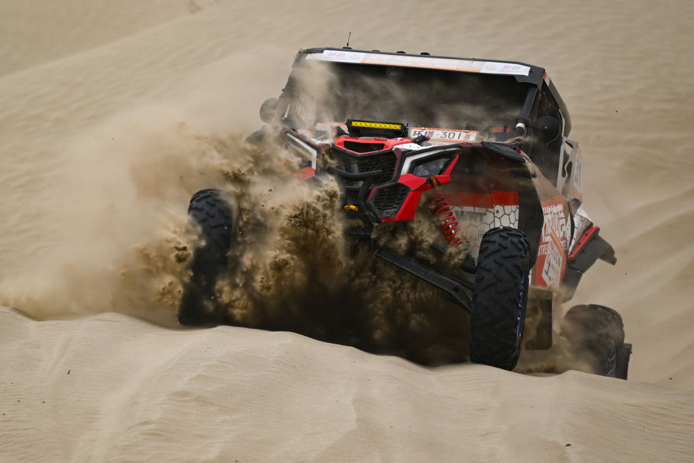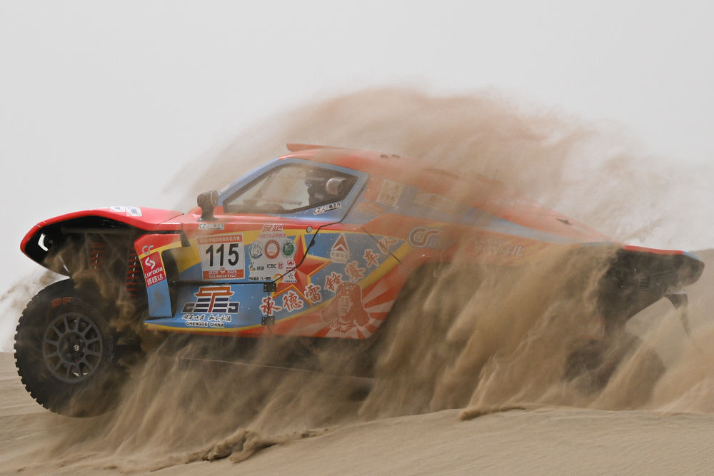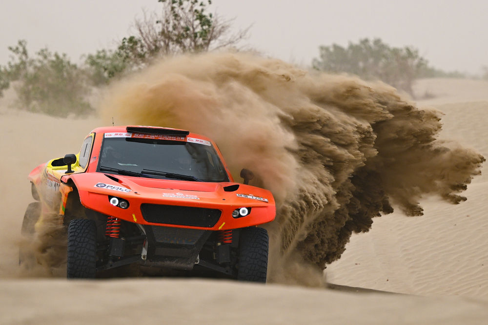 2025年5月31日,極道體育黑熊輪胎車隊車手趙善鵬、領航員郭峰在比賽中。新華社記者 辛悅衛(wèi) 攝