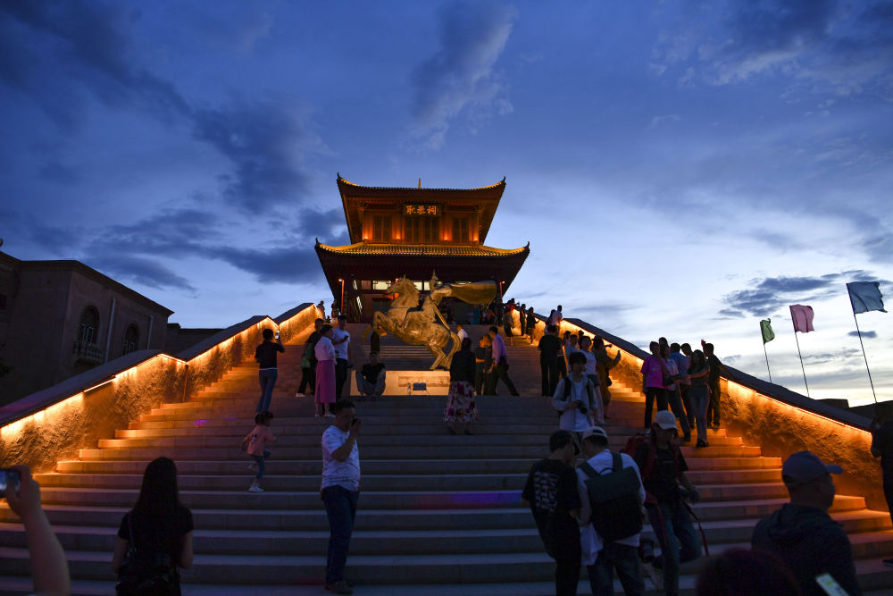 游客在新疆喀什古城景區(qū)東門前游玩拍照(2023年6月14日攝)。新華社記者 胡虎虎 攝
