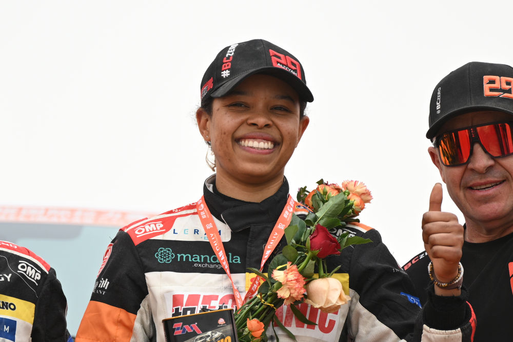↑6月1日,零公里潤滑油ZM-Buggyra車隊塞舌爾車手阿莉亞·科洛克參加收車儀式。新華社記者 辛悅衛(wèi) 攝