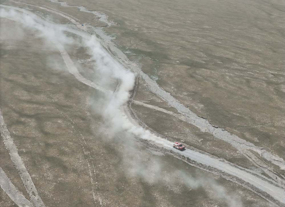 ↑5月28日,久騎控車拉力車隊車手彭楊在第七賽段比賽中