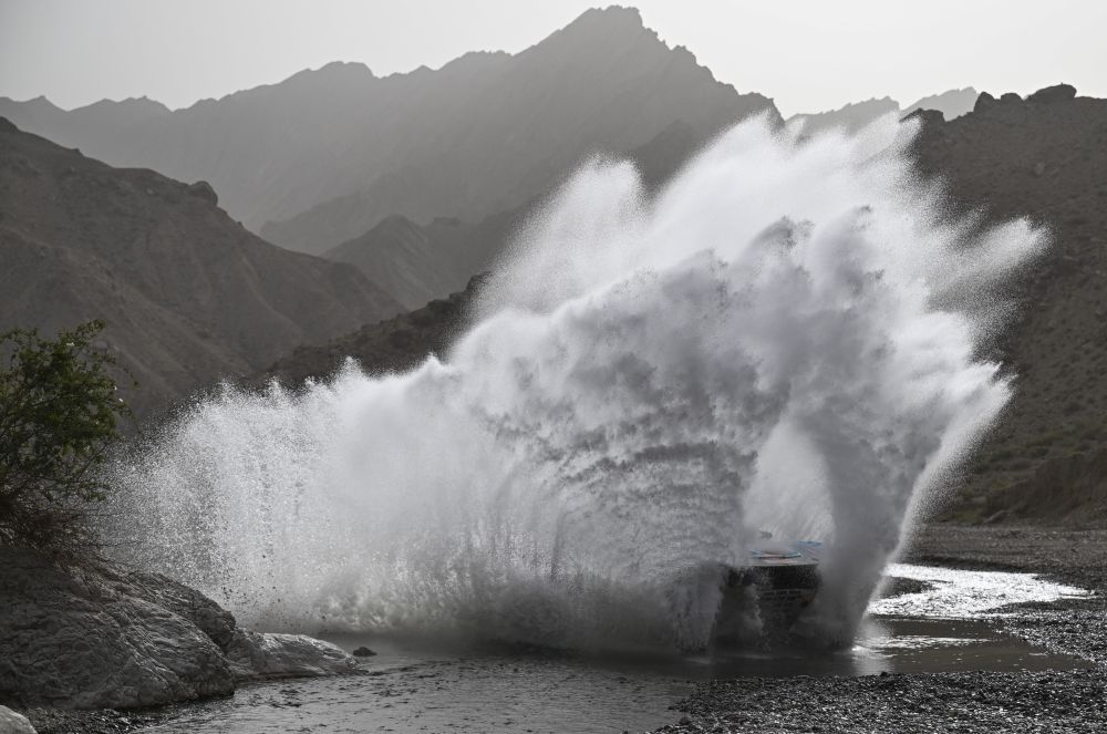 ↑5月23日,賽車在第三賽段比賽中沖過涉水路段