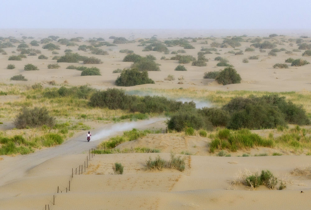 第九賽段在新疆喀什地區(qū)麥蓋提縣的沙漠中進行。新華社記者 辛悅衛(wèi) 攝