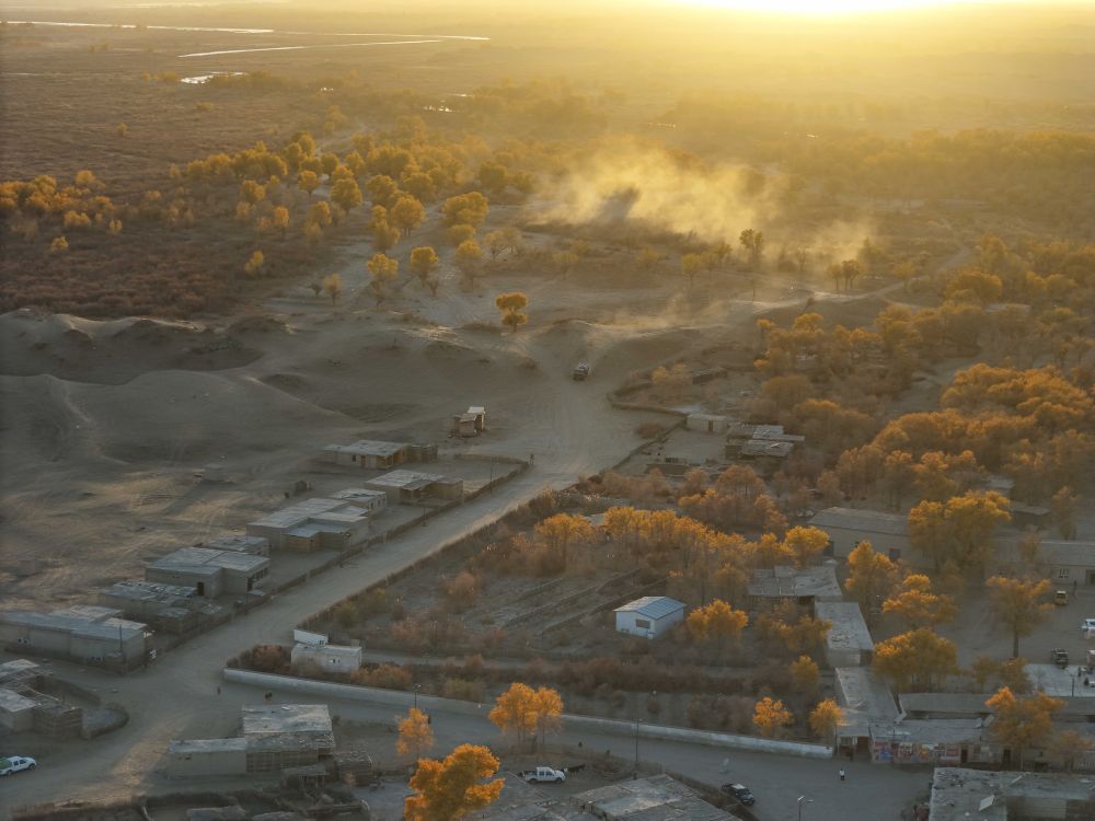 ↑這是2024年11月5日拍攝的新疆于田縣達里雅布依舊址景區(qū)一角(無人機照片)。新華社記者 胡虎虎 攝