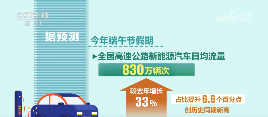 據(jù)預(yù)測(cè),今年端午假期,全國(guó)高速公路新能源汽車(chē)日均流量830萬(wàn)輛次,較去年增長(zhǎng)33%,占比提升6.6個(gè)百分點(diǎn),創(chuàng)歷史同期新高。各地推出的智能導(dǎo)航APP實(shí)時(shí)更新充電站點(diǎn)信息,部分服務(wù)區(qū)推出“潮汐充電”“移動(dòng)充電槍”等創(chuàng)新服務(wù),持續(xù)緩解車(chē)主續(xù)航焦慮。