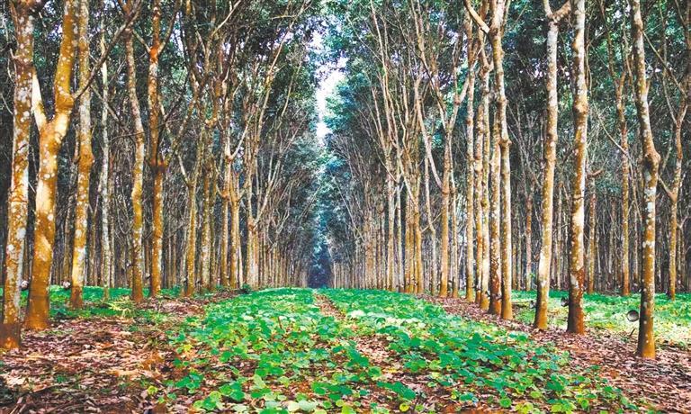 在距離西雙版納傣族自治州景洪市環(huán)城北路約1公里處,記者見到云南省熱帶作物科學研究所占地1054畝的環(huán)境友好型生態(tài)膠園千畝試驗示范基地。這里將橡膠樹種植行距從傳統(tǒng)8米擴大到20米以上,在橡膠樹間套種上述經濟作物。如此布局,即使橡膠行情不好,經過精心篩選套種的其他經濟作物也能取得不錯的經濟效益。