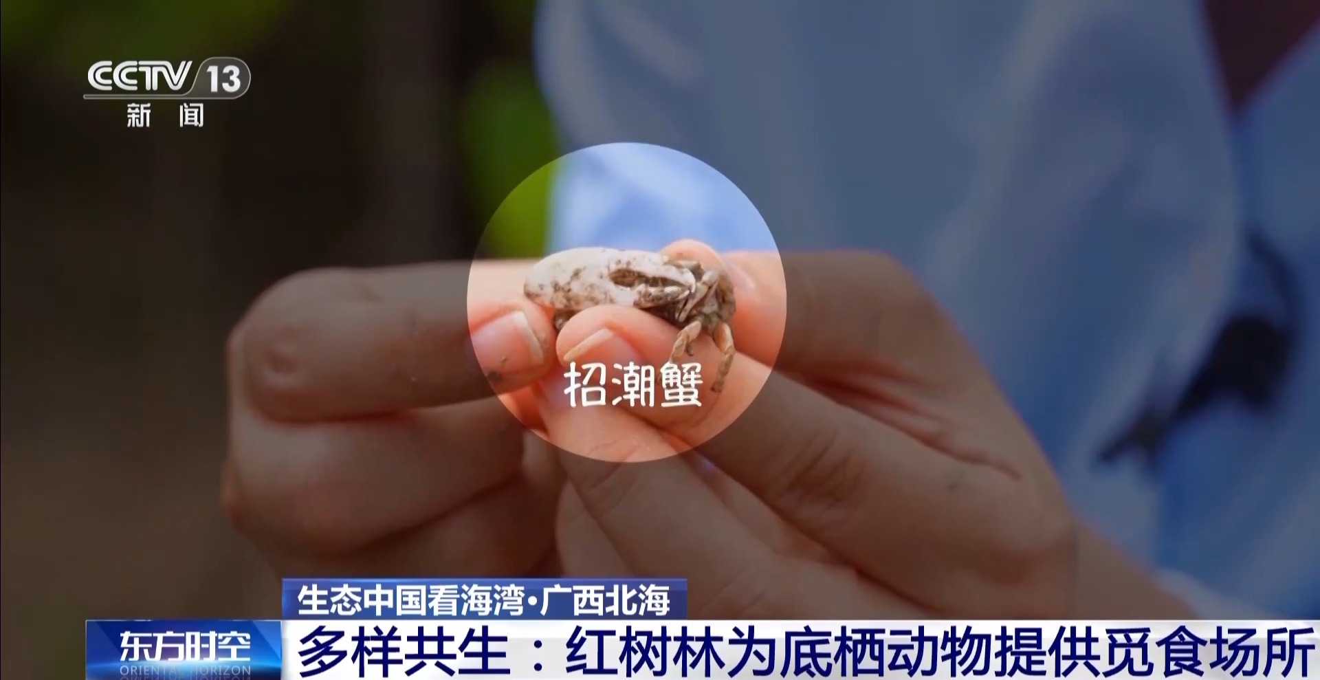 總臺(tái)記者 王潔:我手上就有兩只非??蓯?ài)的蟹類(lèi),非常小巧玲瓏,很可愛(ài)活潑,叫擬相手蟹,喜歡爬樹(shù)?;野咨氖谴菩?,雄蟹則是個(gè)更大而且全身通紅,更加威風(fēng)凜凜,它們叫“招潮蟹”。