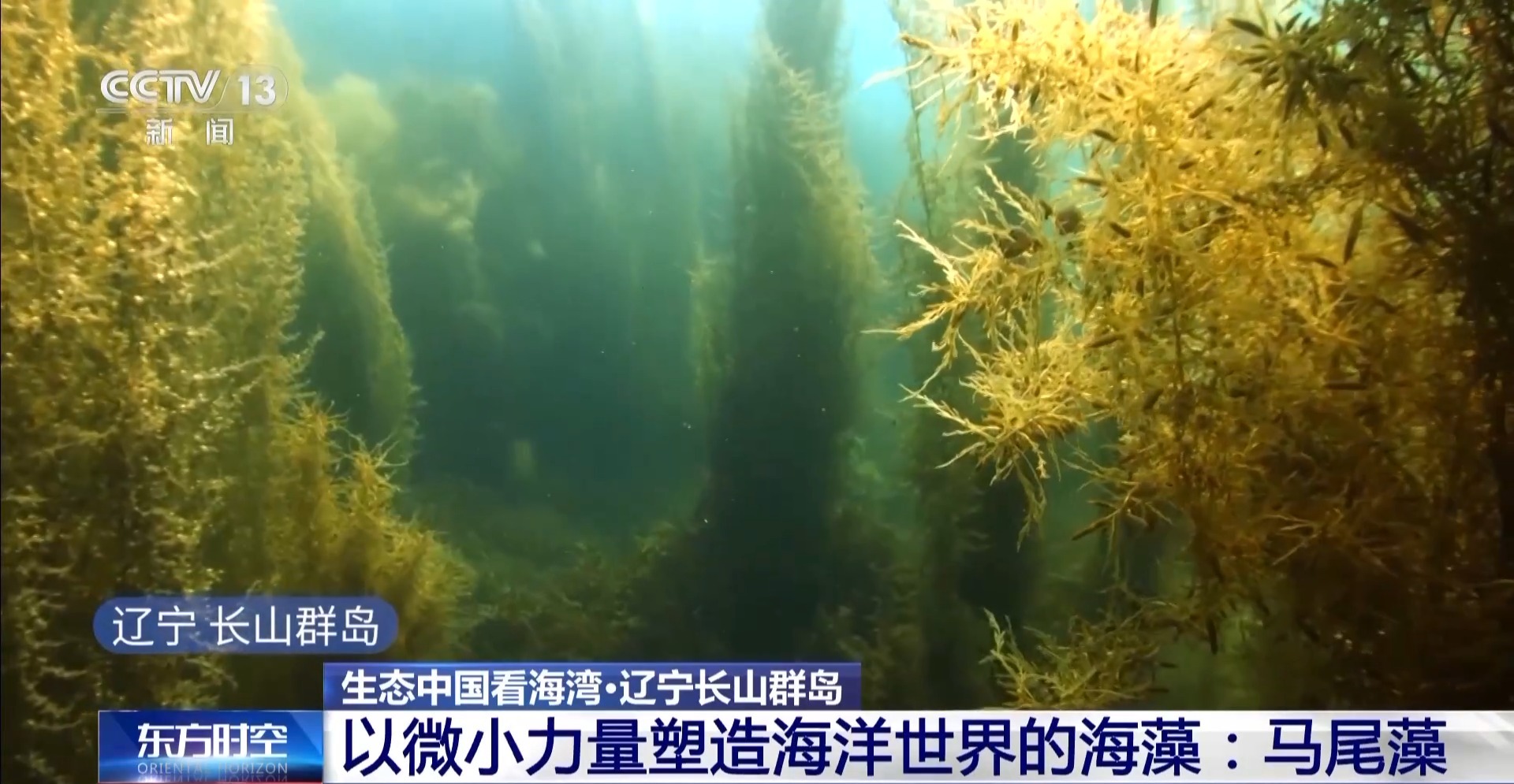 在遼寧長(zhǎng)山群島有一種叫馬尾藻的海洋藻類(lèi),它們一束束地纏繞在一起,最長(zhǎng)的可達(dá)十幾米。我國(guó)是馬尾藻主要產(chǎn)地之一,藻類(lèi)群落不僅是眾多海洋生物的棲息地,還在全球碳循環(huán)、海洋生態(tài)平衡中扮演著重要角色。在海水中,它的顏色是深黃綠色。