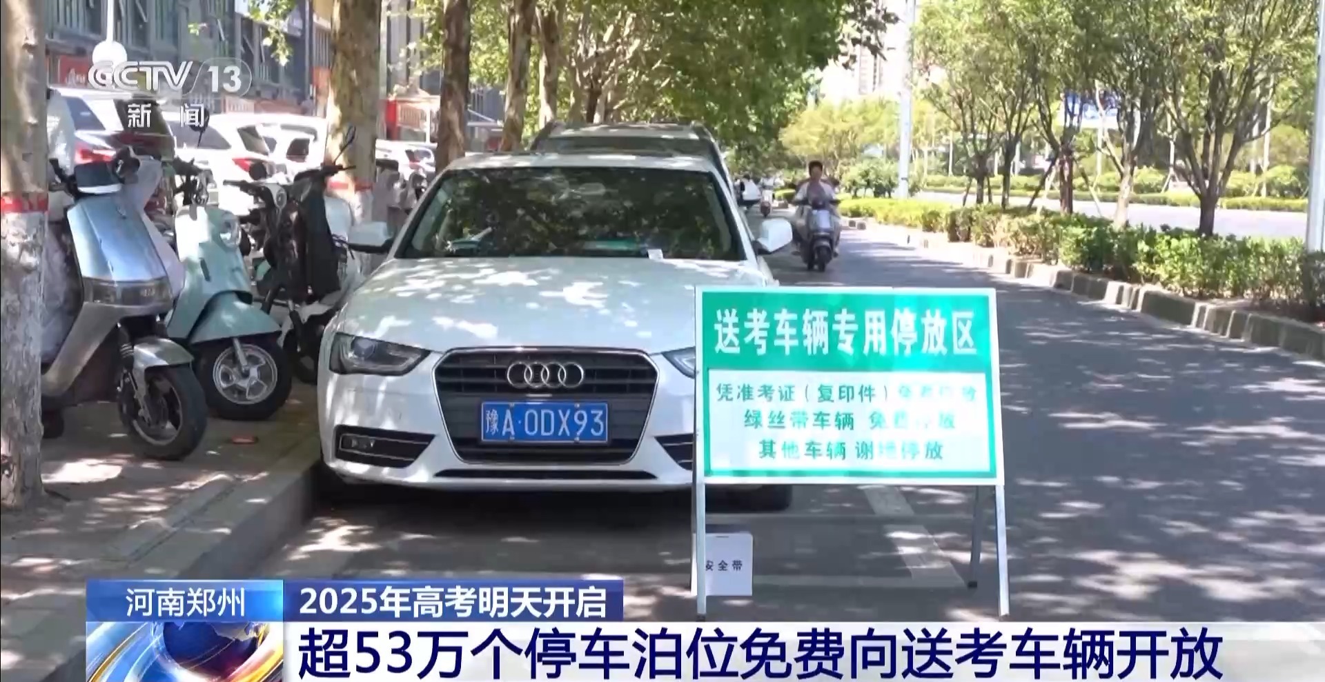 在河南鄭州,公交、城管等部門通過開展噪聲管控、開放免費(fèi)停車泊位。在鄭州市一個(gè)考點(diǎn)附近,周邊的道路停車泊位上,已經(jīng)設(shè)置了“送考車輛專用停放區(qū)”的引導(dǎo)牌。旁邊一個(gè)經(jīng)營性停車場(chǎng),考試期間也向送考車輛免費(fèi)開放。據(jù)了解,今年高考期間,鄭州城管部門共設(shè)置各類高考停車泊位超53萬個(gè)。