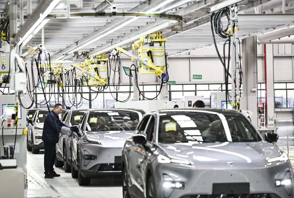 3月6日,工人在位于重慶市渝北區(qū)的長(zhǎng)安汽車(chē)數(shù)智工廠總裝車(chē)間作業(yè)。新華社記者 王全超 攝