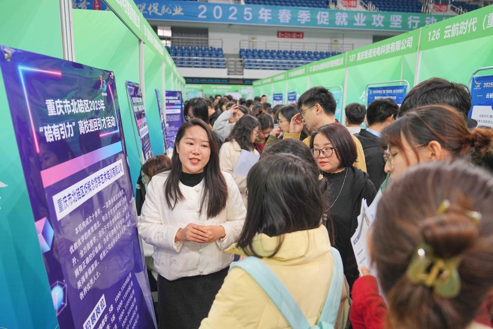 3月28日,西南大學(xué)應(yīng)屆畢業(yè)生在2025年春季促就業(yè)攻堅(jiān)行動(dòng)綜合類(lèi)雙選會(huì)現(xiàn)場(chǎng)了解崗位信息。活動(dòng)邀請(qǐng)裝備制造、新能源、數(shù)字信息、綠色化工、基礎(chǔ)教育、醫(yī)療衛(wèi)生等行業(yè)領(lǐng)域企業(yè)參與,為畢業(yè)生搭建廣闊多元的就業(yè)平臺(tái)。新華社發(fā)(秦廷富攝)