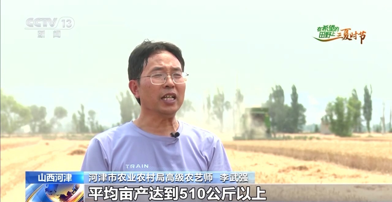 河津市農(nóng)業(yè)農(nóng)村局高級(jí)農(nóng)藝師 李武強(qiáng):示范基地的小麥估計(jì)一周左右全部收完,平均畝產(chǎn)達(dá)到510公斤以上,較去年增產(chǎn)8%。下一步,將持續(xù)加大實(shí)用技術(shù)應(yīng)用,努力實(shí)現(xiàn)‘收到手’到‘收得好’轉(zhuǎn)變。