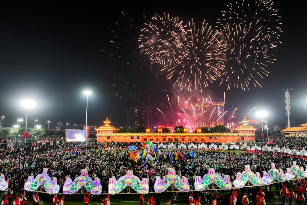 圖為“村超”球場的非遺巡演和展演。周光勝 攝