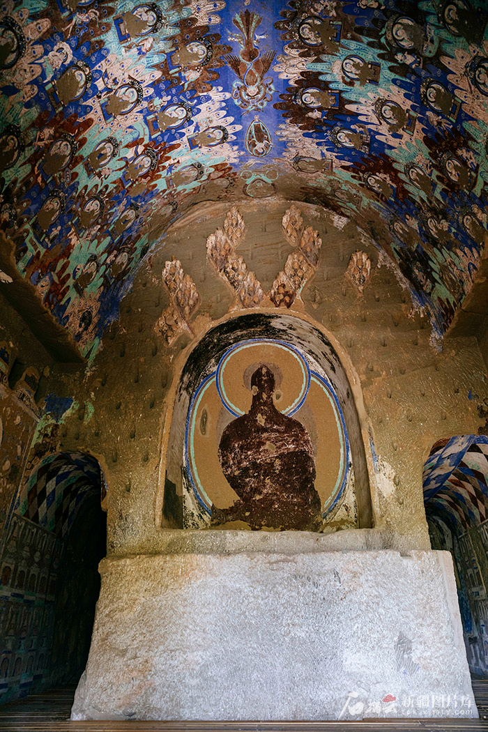 敦煌莫高窟203窟,兩側(cè)墻壁上排列密集的小佛像,與龜茲壁畫異曲同工。資料圖。