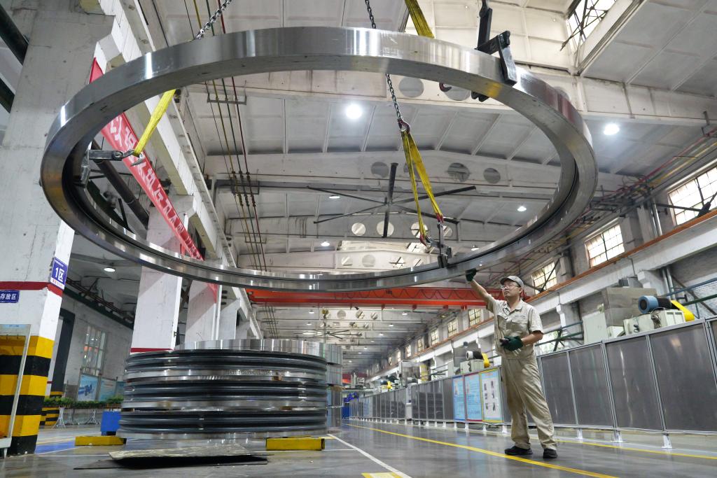 5月22日,工人在洛軸集團風電三車間生產(chǎn)線上作業(yè)。新華社記者 李嘉南 攝