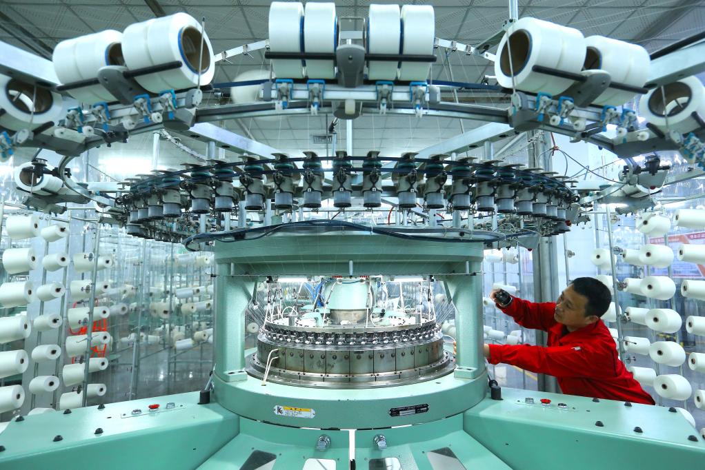 5月19日,山東省青島市即墨區(qū)龍山街道一家紡織企業(yè)的工人在生產(chǎn)出口海外市場的服裝面料。新華社發(fā)(梁孝鵬 攝)