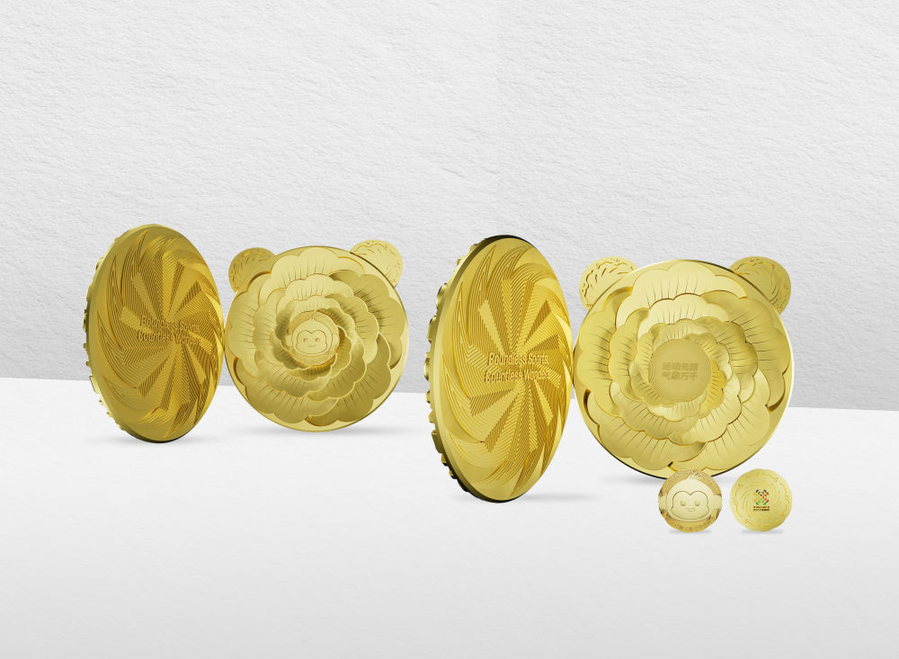 此外,“竹光”以其精巧的內部結構引人矚目,詮釋了“分享”的核心理念。輕輕向左翻開獎牌正面,一枚獨特的金屬質徽章便呈現(xiàn)眼前:一面是靈動的川金絲猴“錦仔”,另一面則由太陽神鳥環(huán)繞成都世運會會徽。