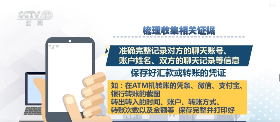 然后記住抓緊梳理收集相關(guān)證據(jù),準(zhǔn)確完整記錄對方的聊天賬號、賬戶姓名、雙方的聊天記錄等信息;保存好匯款或轉(zhuǎn)賬的憑證,如在ATM機轉(zhuǎn)賬的憑條、微信、支付寶、銀行轉(zhuǎn)賬的截圖;轉(zhuǎn)出轉(zhuǎn)入的時間、賬戶、轉(zhuǎn)賬方式、轉(zhuǎn)賬次數(shù)以及金額等,保存完整并打印好。最后,您需要盡快前往最近的派出所,進行現(xiàn)場報案。在這里,您要配合公安機關(guān)做好詢問筆錄,提供相關(guān)證據(jù)。