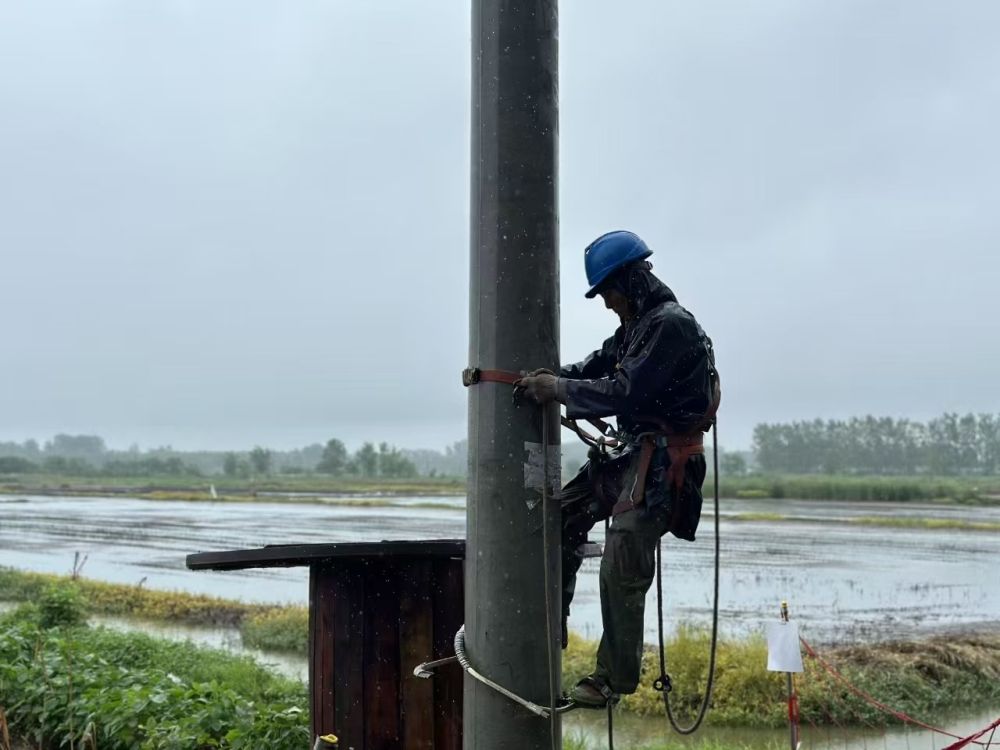 21日上午,暴雨如注,湖北荊州石首市大垸鎮(zhèn)北碾村的田野在雨幕中愈發(fā)朦朧?!坝陝?shì)還在加大,必須趕在積水漫過(guò)田埂前完成架線!”在北碾村東河頭八組,電工祁劍的呼喊聲穿透雨幕。