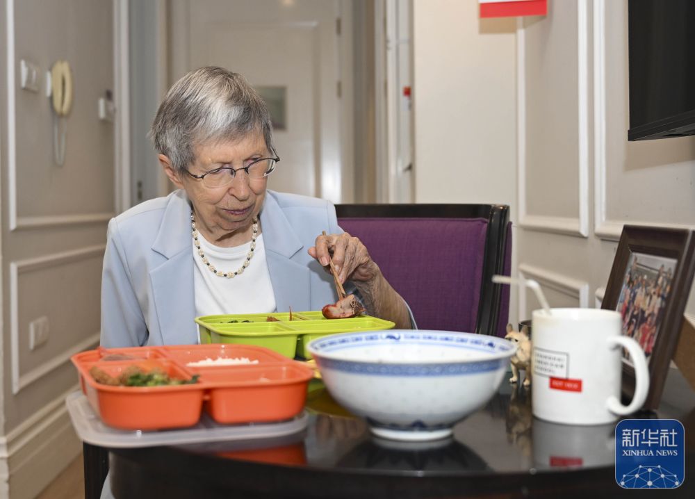 2025年6月13日,白麗詩(shī)在養(yǎng)老院的房間里用午餐。