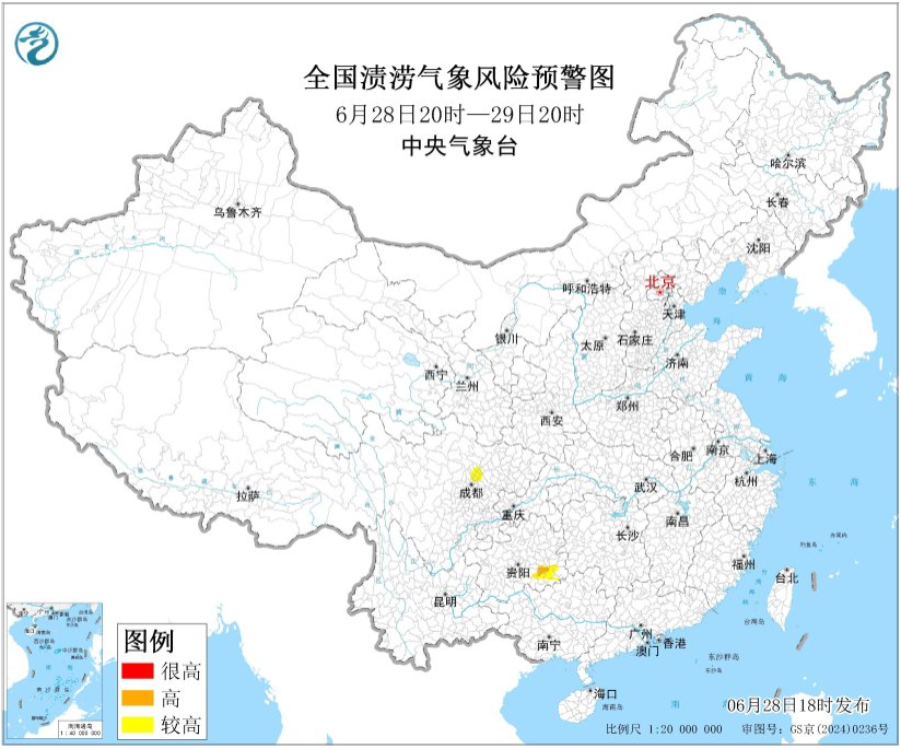 中央氣象臺6月28日18時發(fā)布漬澇風險氣象預報: