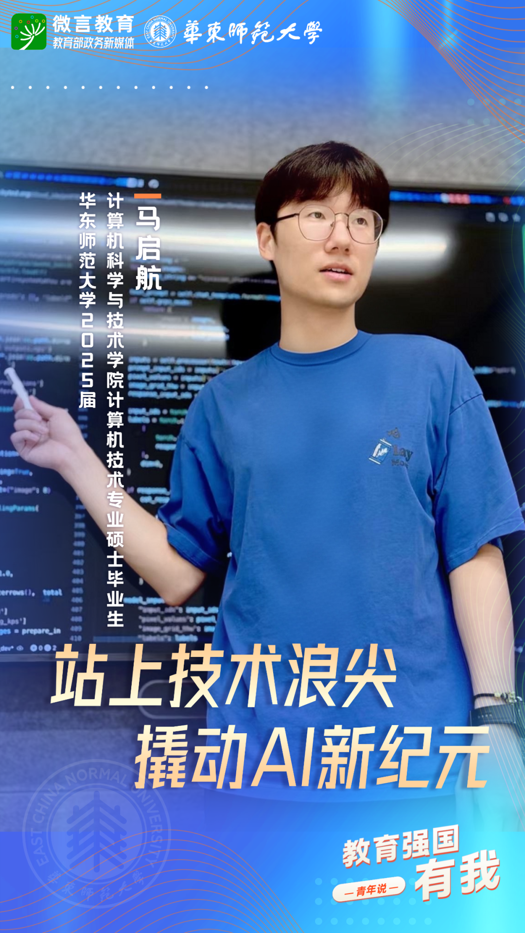 習(xí)近平總書記強(qiáng)調(diào),希望廣大青年堅(jiān)定理想信念,厚植家國情懷,練就過硬本領(lǐng),發(fā)揚(yáng)奮斗精神,到祖國和人民最需要的地方發(fā)光發(fā)熱,為中國式現(xiàn)代化建設(shè)貢獻(xiàn)青春力量。教育強(qiáng)國建設(shè),青年何為?教育部政務(wù)新媒體推出“教育強(qiáng)國,有我!”網(wǎng)絡(luò)主題宣傳活動之“青年說(報(bào)國篇)”系列,展現(xiàn)青年學(xué)子將個人理想融入國家發(fā)展的青春擔(dān)當(dāng)。今天,跟教育小微通過1個視頻和1組海報(bào),一起來看華東師范大學(xué)學(xué)子如何“向新而行”——