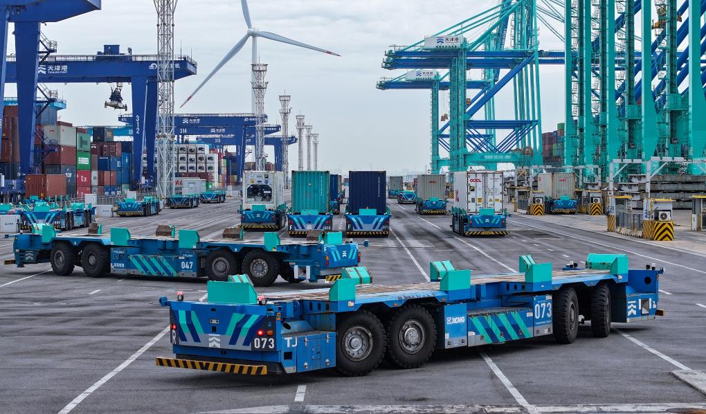 天津港第二集裝箱碼頭一景(無人機(jī)照片)。新華社記者趙子碩 攝