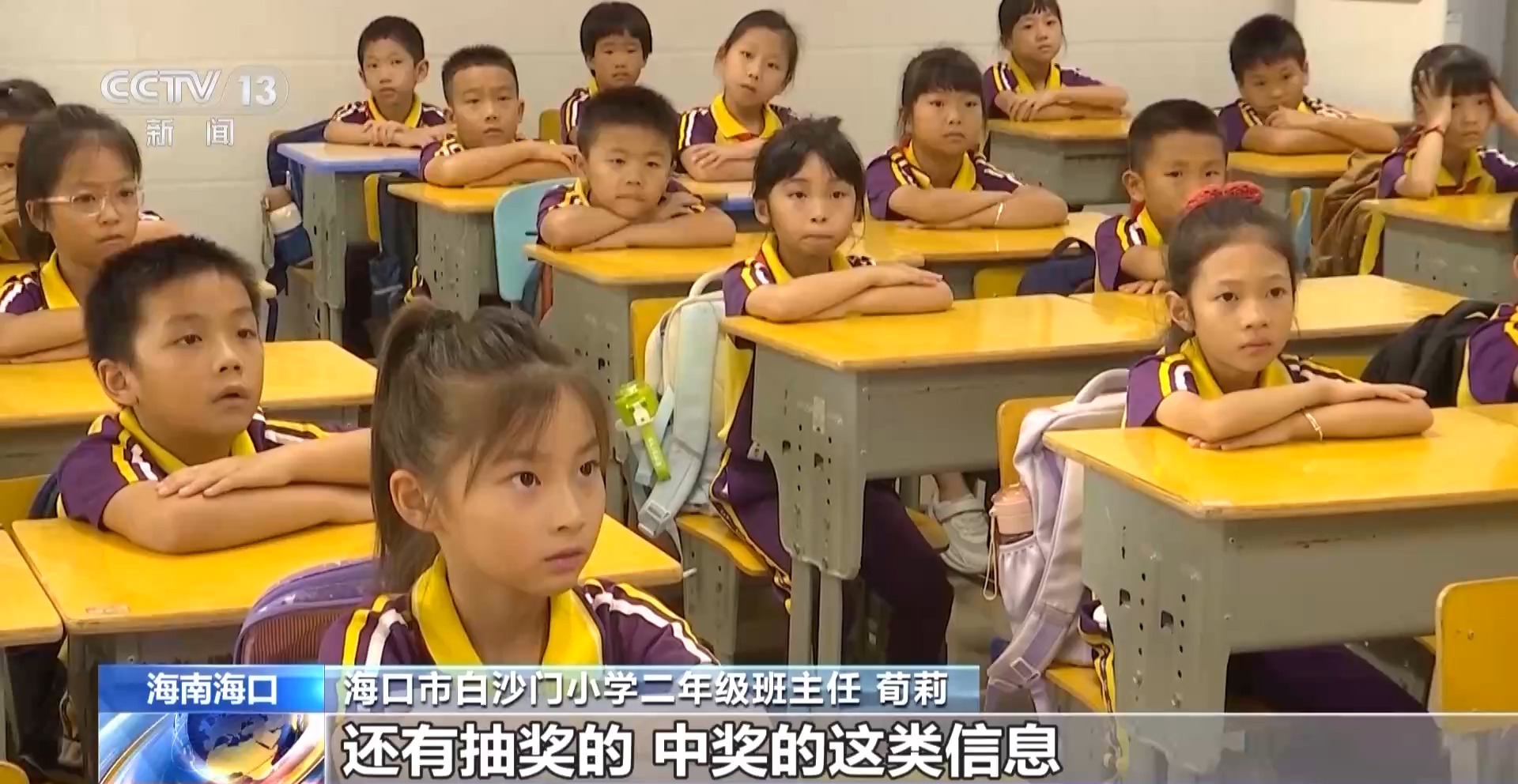 海口市白沙門小學(xué)二年級班主任 荀莉:不要輕易點(diǎn)開陌生的鏈接,這個比較多,還有抽獎的、中獎的這類信息。經(jīng)過大商場的門口填寫一些相關(guān)的信息,你就可以去領(lǐng)什么樣的獎,不要有那種占便宜的心理。