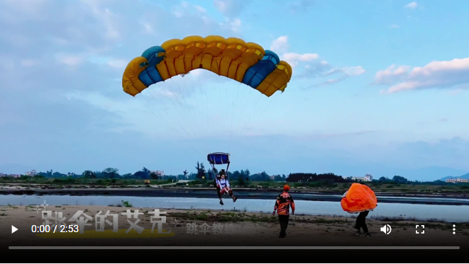 艾克萊姆出生在大美新疆博樂市,是一名職業(yè)跳傘員,也是海南鶯歌海跳傘基地的一名跳傘教練。艾克萊姆喜歡在藍天白云間自由穿梭的感覺,三年間累計完成了1000多次的跳傘。艾克萊姆說:“跳傘是一種與天空對話的方式,是人類對自由勇敢的追求。在高空中,風在耳邊呼嘯,那種感覺無法用言語來形容?!?/p>