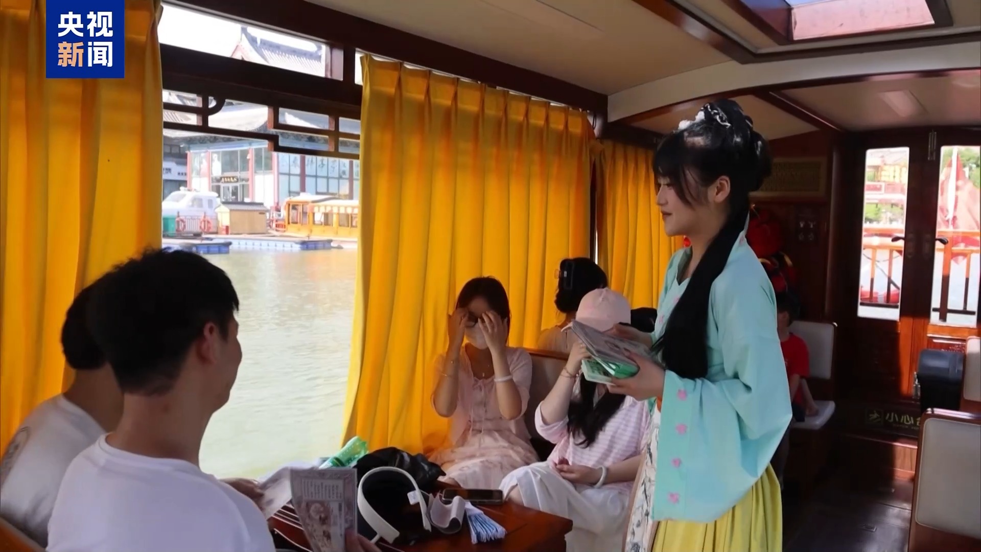 在河南開封,游客能坐船體驗“宋朝人的一天”,船上設(shè)有互動詩詞小游戲,市內(nèi)的八大景區(qū)通過汴河水道“串珠成鏈”,吸引游客參與其中。