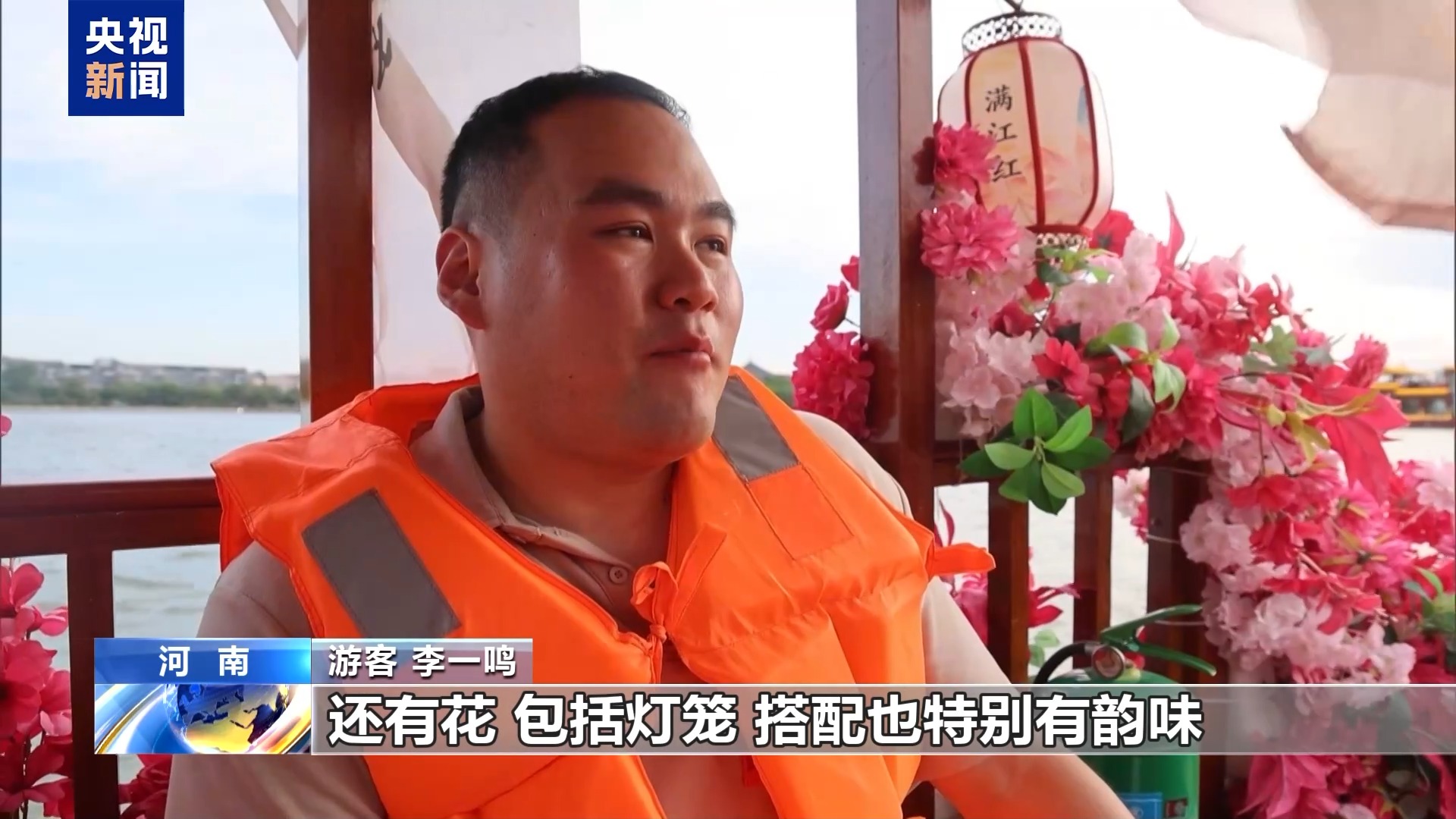 游客 李一鳴:置身于這個歷史古城之中,就像《清明上河圖》里面的人物一樣。船上裝點(diǎn)的古典詩詞,還有花,包括燈籠,搭配特別有韻味。
