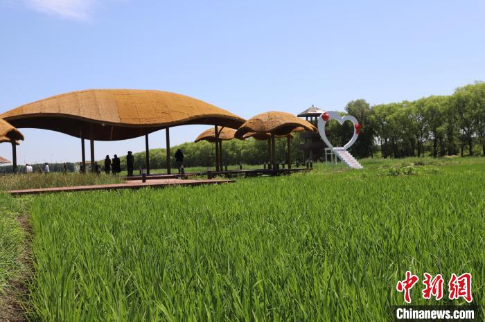 圖為游客在300畝水稻田打卡?!≡顒?攝