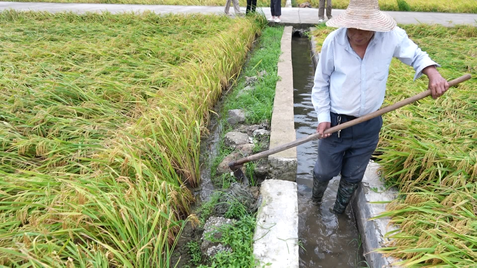 農(nóng)技專家楊煥清來到現(xiàn)場指導(dǎo)農(nóng)戶搶收,“它倒平后很容易會(huì)發(fā)芽,稻谷發(fā)芽以后就沒有價(jià)值了?,F(xiàn)在主要就是開溝排水,一有晴天馬上搶收。”