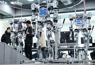 湖北省組織省內(nèi)多所高校、科研院所、企業(yè)進(jìn)行科研攻關(guān)。圖為武漢格藍(lán)若智能技術(shù)股份有限公司研發(fā)團(tuán)隊(duì)成員在調(diào)試人形機(jī)器人。新華社發(fā)