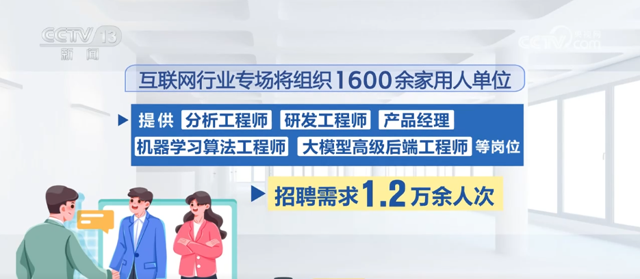 互聯(lián)網(wǎng)行業(yè)專場(chǎng)將組織1600余家用人單位,提供分析工程師、研發(fā)工程師、產(chǎn)品經(jīng)理、機(jī)器學(xué)習(xí)算法工程師、大模型高級(jí)后端工程師等崗位,招聘需求1.2萬(wàn)余人次。