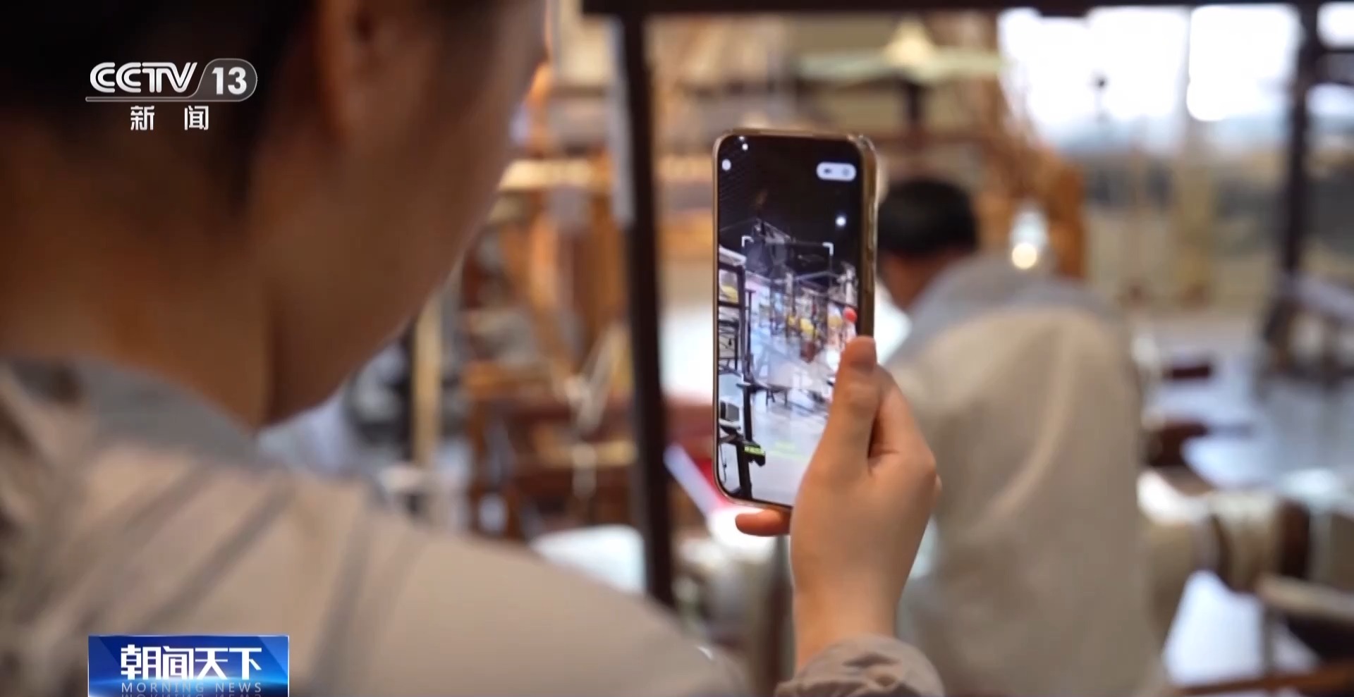 目前,當?shù)靥剿骼脭?shù)字化交互技術,在AR點位上用手機掃描展品,便可觸發(fā)人工智能講解員講解云錦的前世今生。未來借助虛擬現(xiàn)實技術,大家還能夠“坐”上大花樓織機,親身體驗云錦文化的魅力。