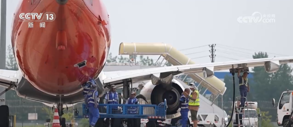 7月16日上午,成都市氣象臺(tái)發(fā)布了高溫紅色預(yù)警信號(hào),多地最高氣溫超過40℃。在成都雙流國際機(jī)場的停機(jī)坪,地表溫度甚至逼近50℃。在這樣的酷熱中,為保障暑期客貨運(yùn)航班運(yùn)輸安全有序,機(jī)場一線的地勤人員頂著高溫堅(jiān)守崗位,通過倒班協(xié)作,保障暑期運(yùn)輸。